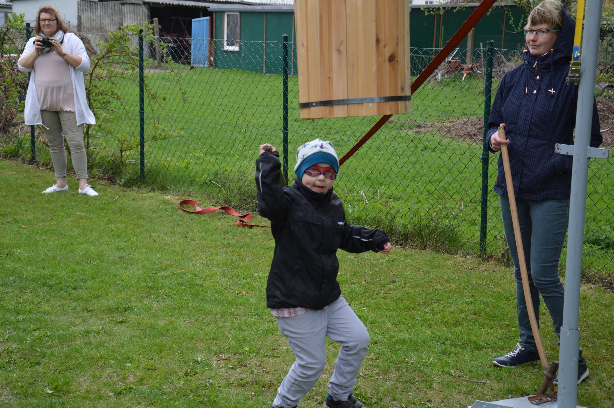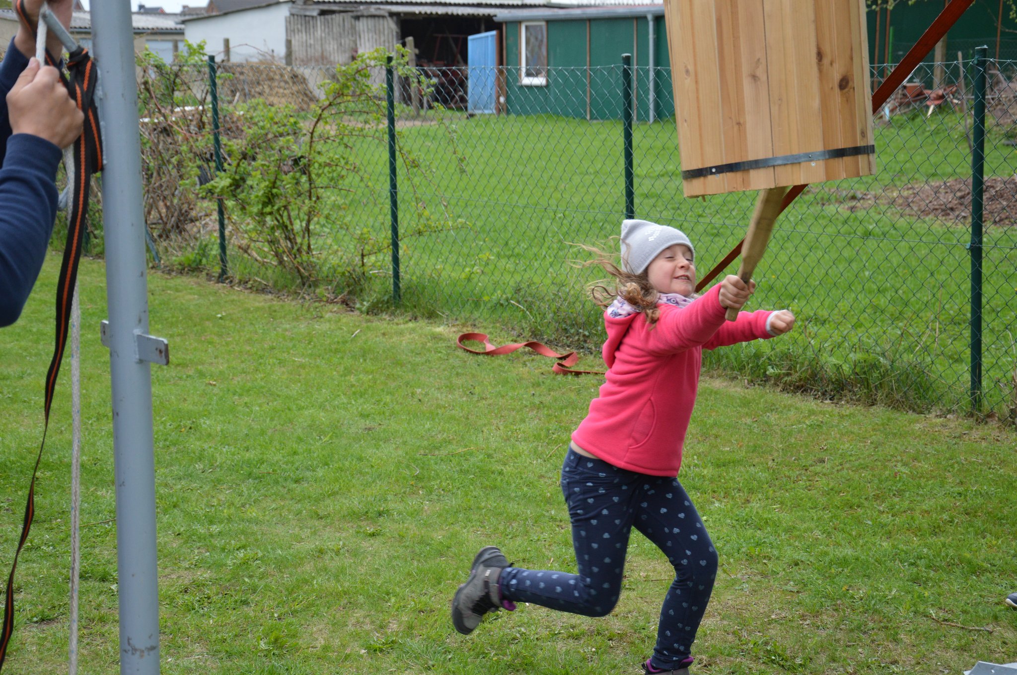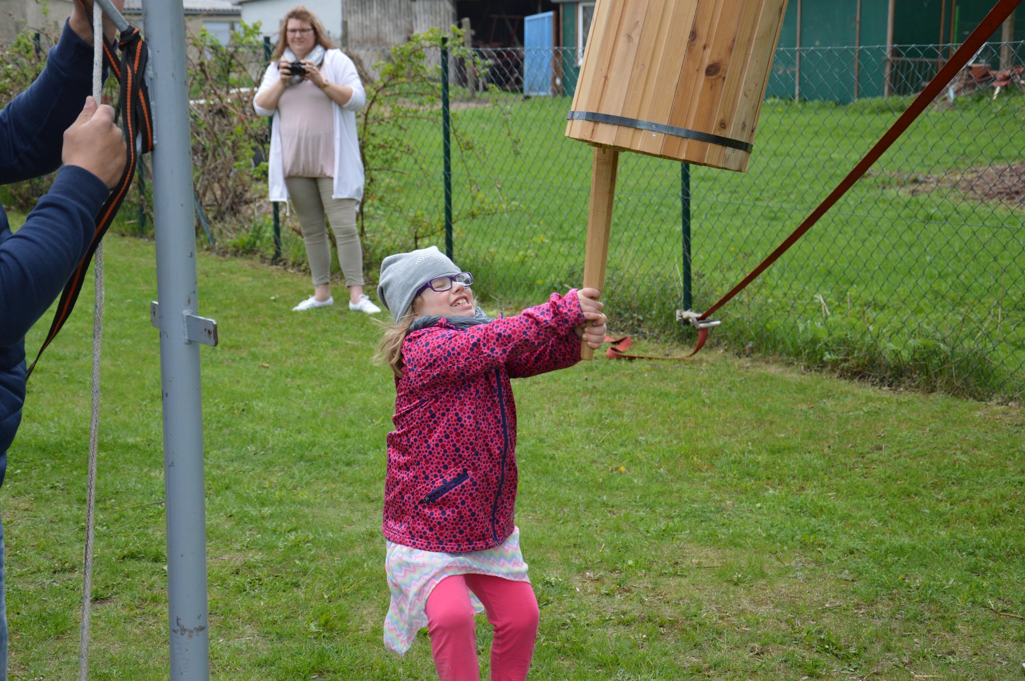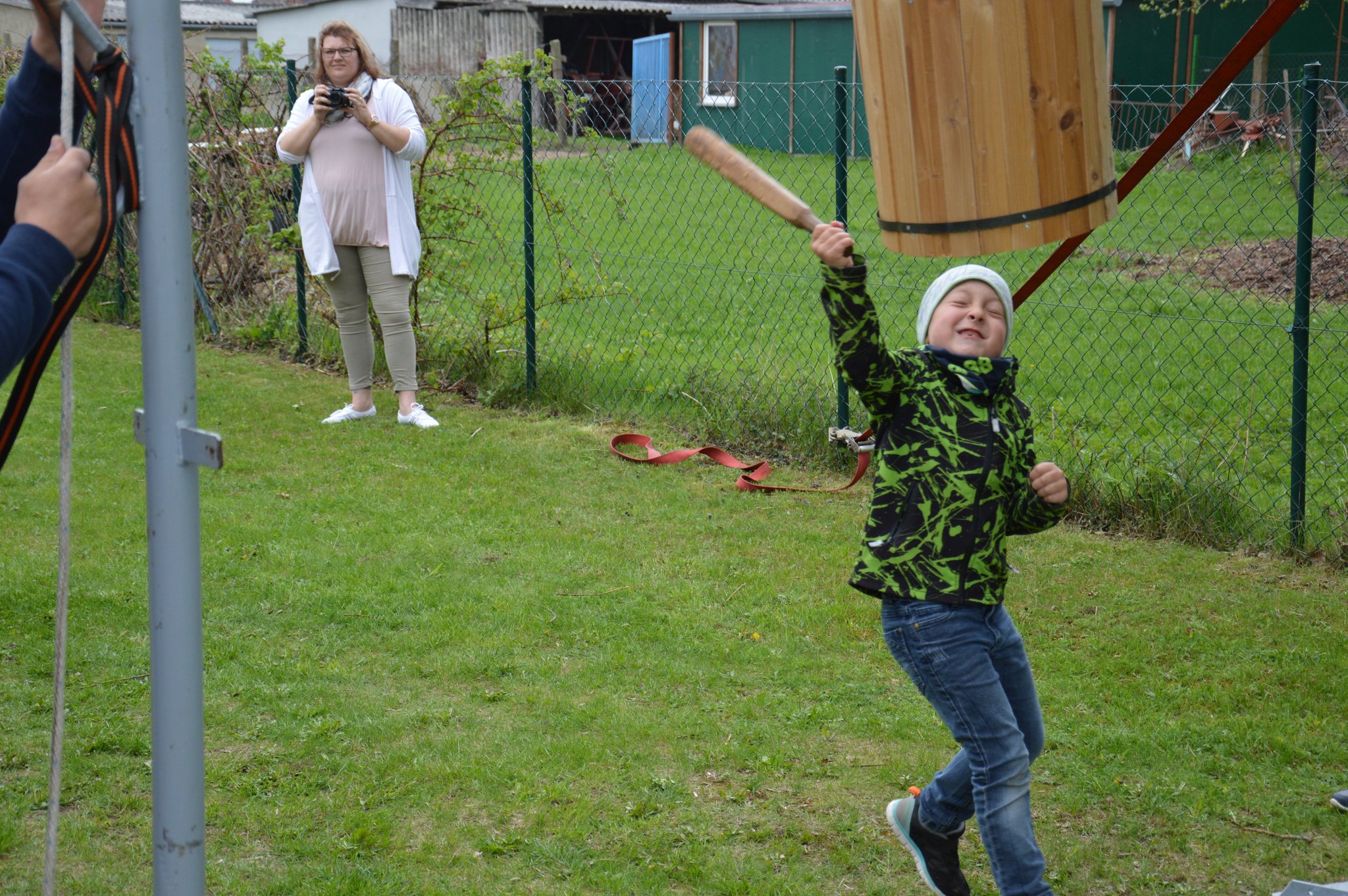 Michelle Klein aus Barth hat der Tonne den Boden rausgehauen und das fast als ganzes Stück, aber alle der 21 beteiligten Kinder haben die vorarbeit geleistet, doch sie war zur richtigen Zeit an der richtigen Stelle mit dem Schlag wo der Boden nicht länger beim der Tonne bleiben konnte!