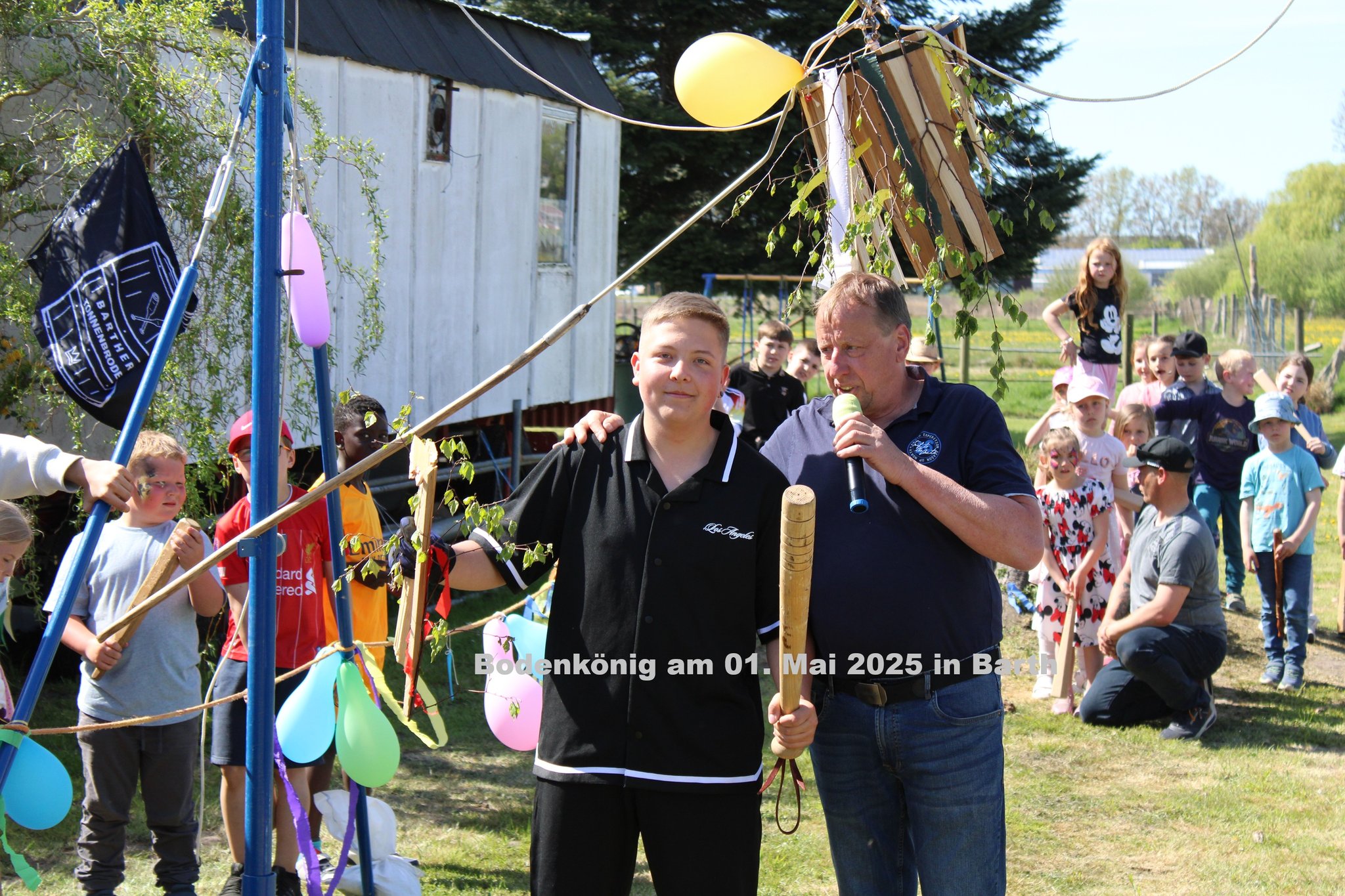 Stäbenkönig beim Kindertonnen- abschlagen in Barth am 01. Mai 2014 wurde Yven Luca Leuschel aus Stralsund und die Spannung wer wohl Tonnenkönig wird wuchs bei Kindern und Zuschauern!