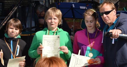 Siegerurkunde und einen Gutschein, auch für den Sandkönig der als einzigster beim lauf unter der Tonne in den Sand fiel.