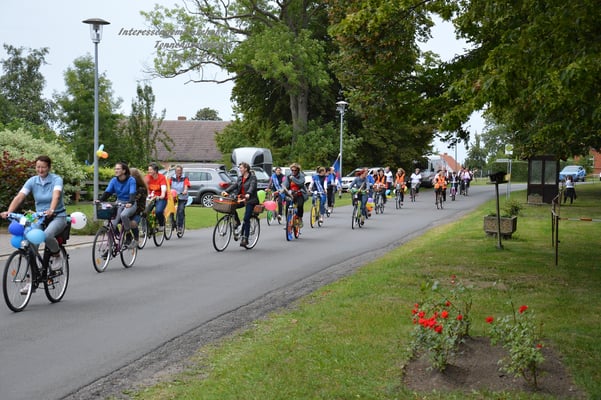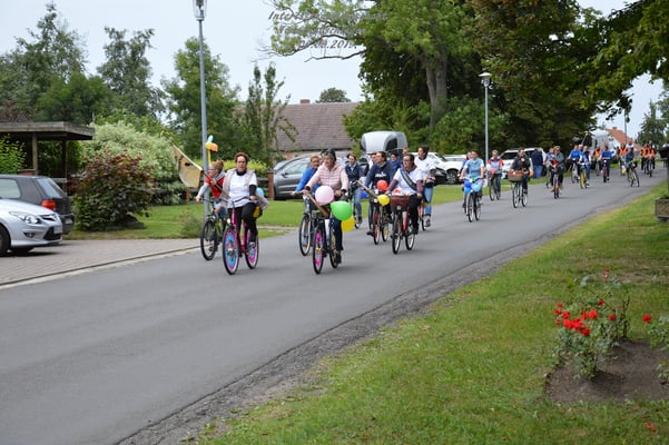 Bei eher durchwachsenem Wetter drehten die 35 Teilnehmerinnen des Amts-Frauen-Tonnenabschlagens 2019 erst einmal eine Runde durch die Gemeinde Kenz.
