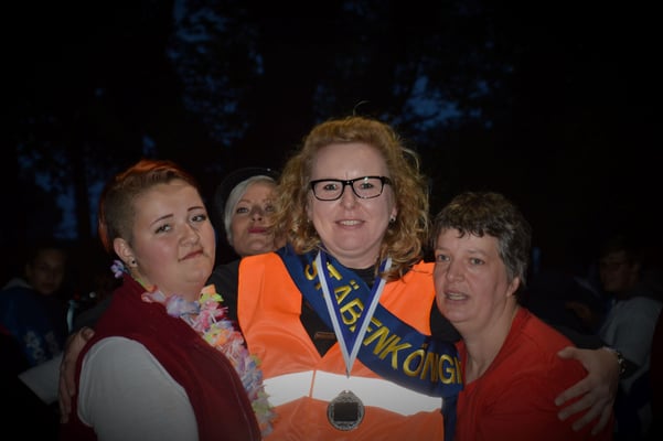 Was kann es schöneres geben als vom Publikum und den Mitstreiterinnen umjubelt zu werden und unterm Galgen hochgeworfen zu werden und dann in eine kleine Pause zum BIerwagen getragen zu werden. ( Es kann nur eine Amts Boden Königin geben! )