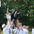Am Festplatz war alles für die vielen Gäste vorbereitet, alle freuten sich schon auf den Wettkampf zu Pferde unter der Tonne.